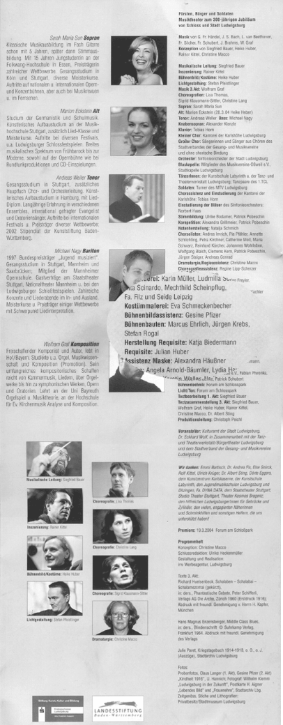 Auftrags-Näharbeit zum Schauspiel zum 300 jährigen Jubiläum von Schloss und Stadt Ludwigsburg