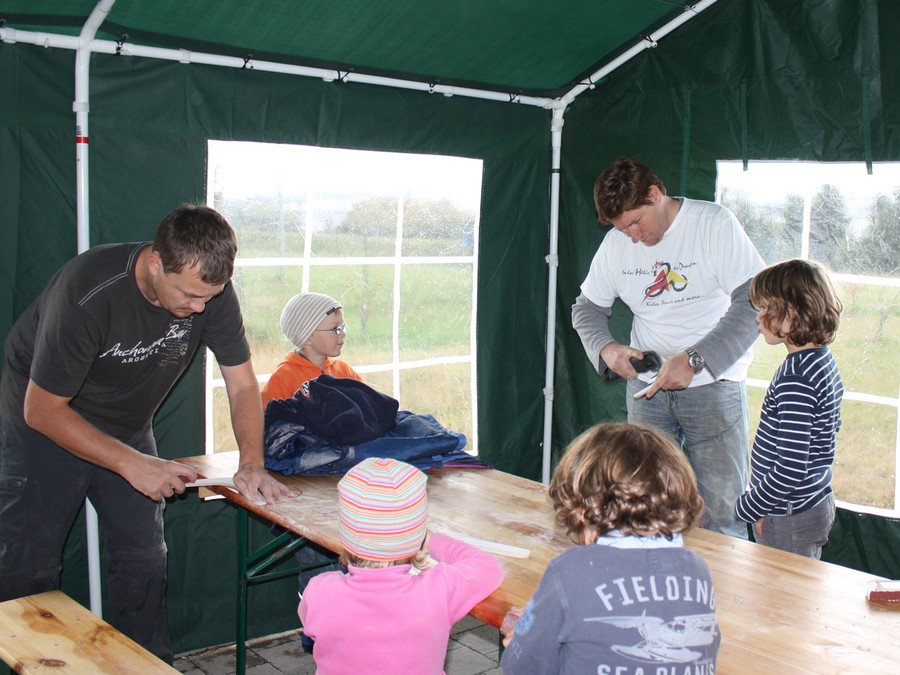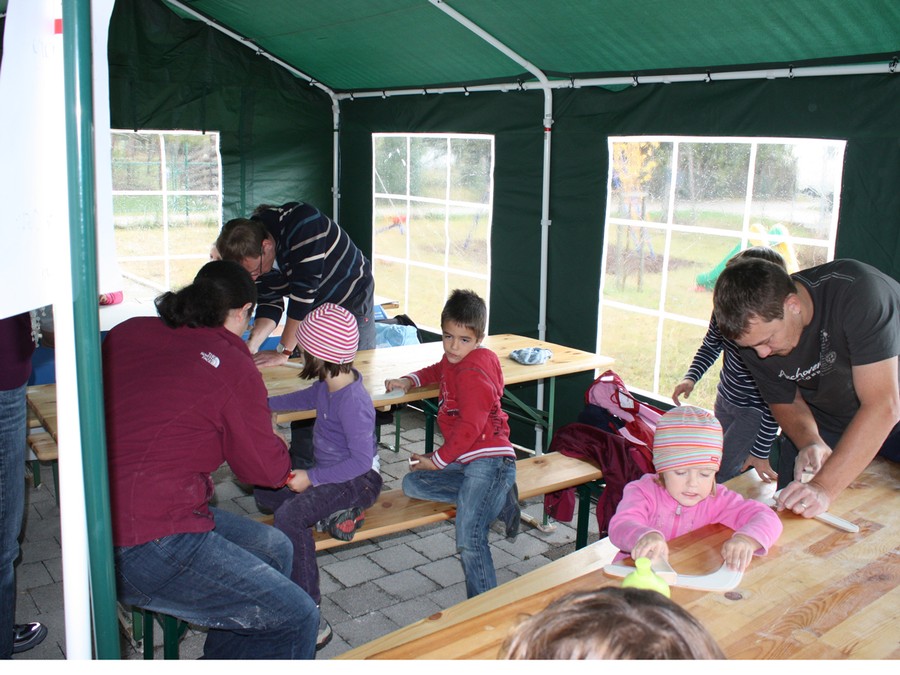 Bumerangbasteln mit Familien beim Obst und Gartenbauverein Münchingen Oktober 2011