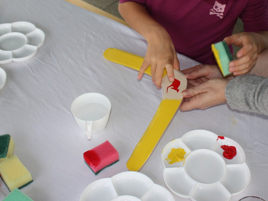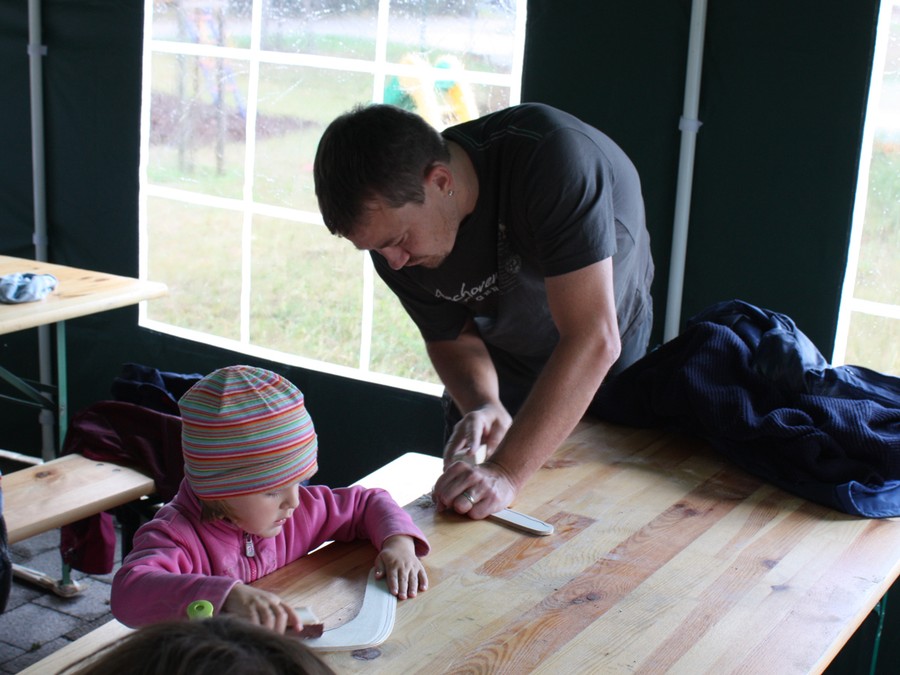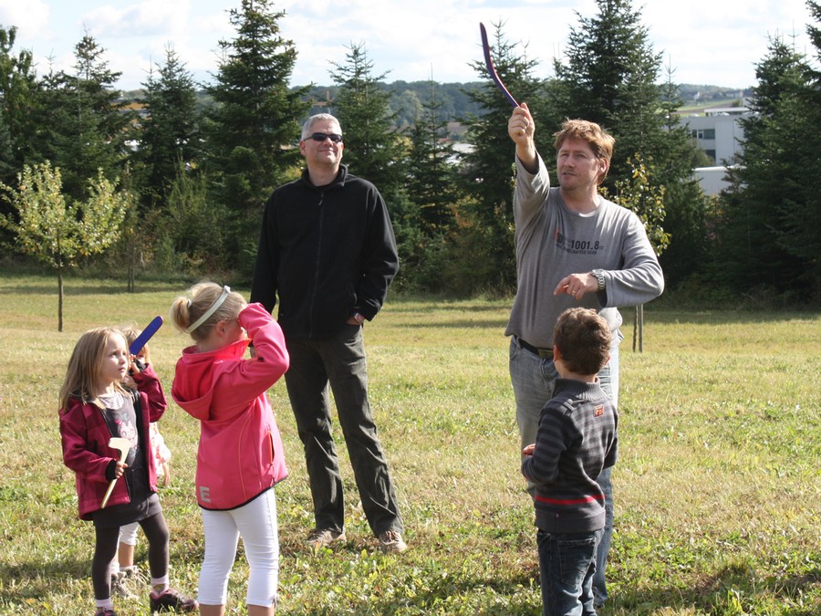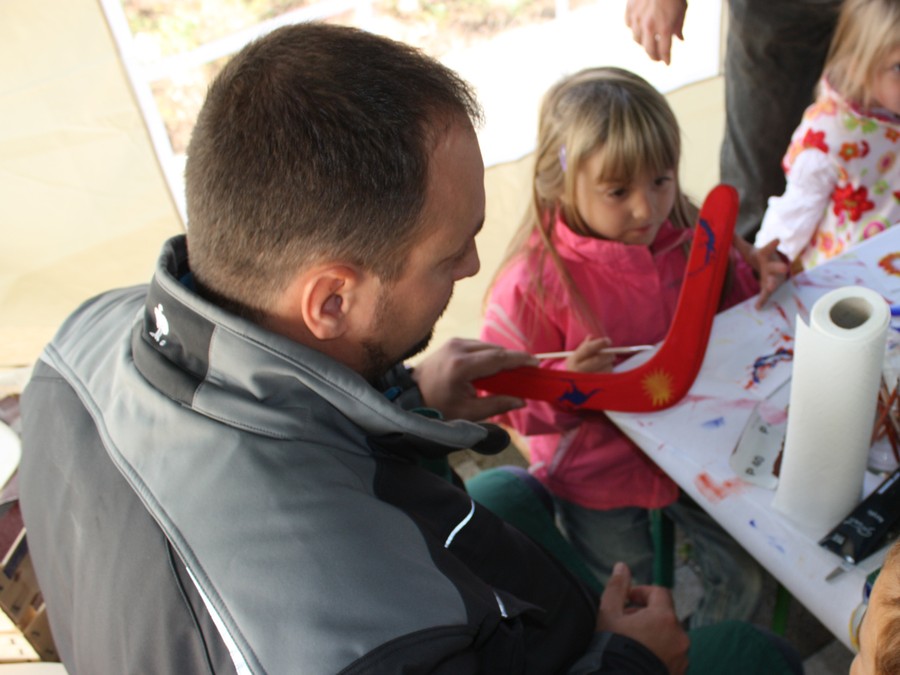 Wir brachten vorgesägte Holz Rohlinge mit ( hier nochmals Danke an die Firma Weihing ), welche die Mütter und Väter in Form schleifen durften und die Kinder dann creativ bemalten. Zum Abschluss gab es dann auch noch gemeinsames Werfen. Wer sauber gearbeitet hat wurde mit einem zurückkommenden Bumerang belohnt