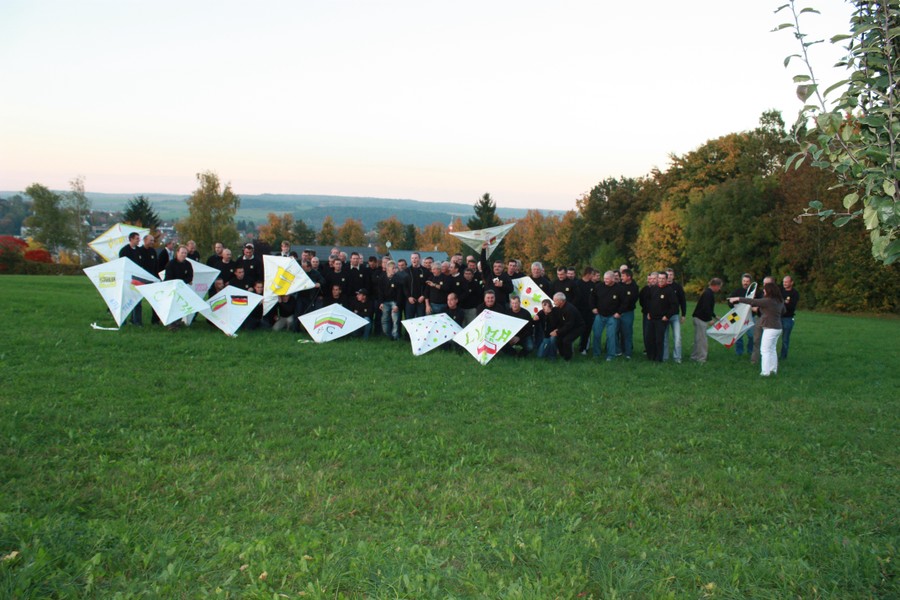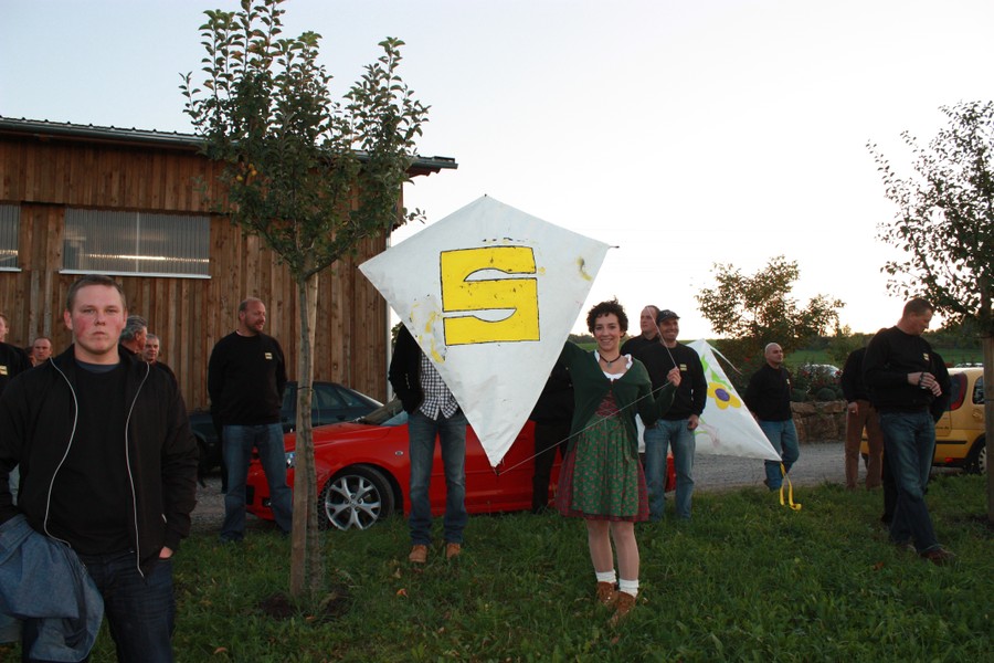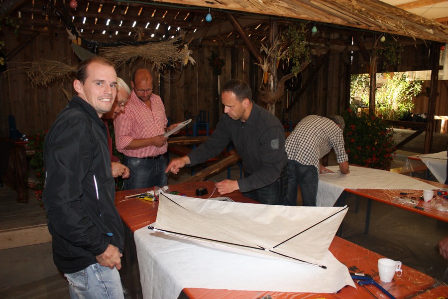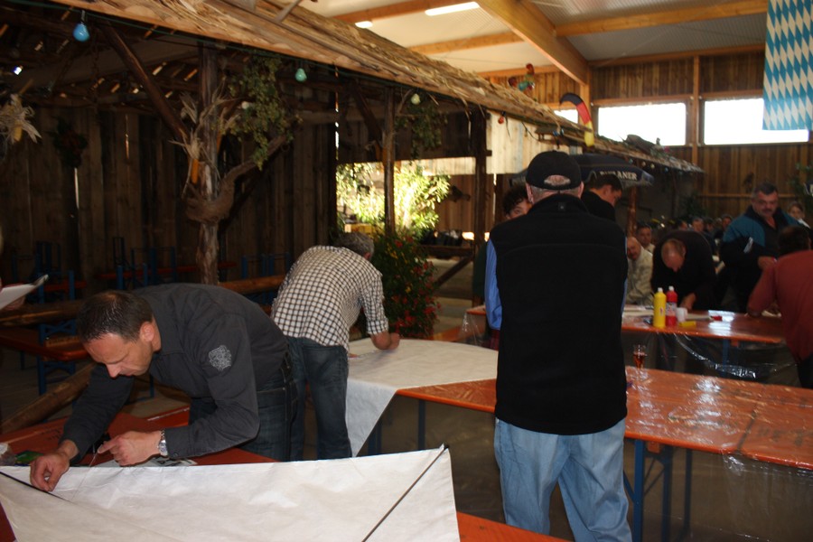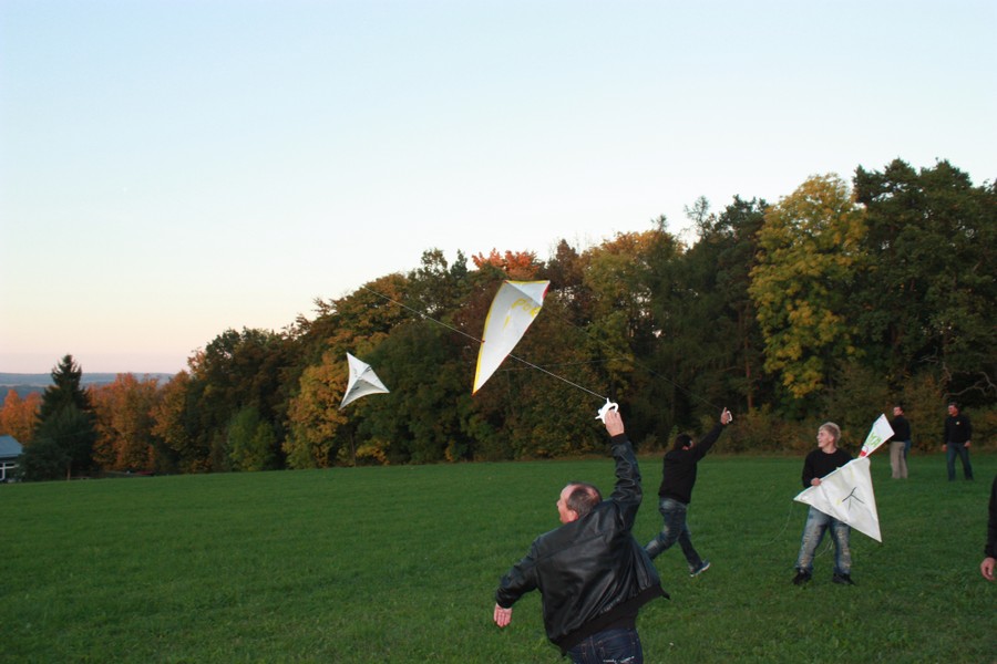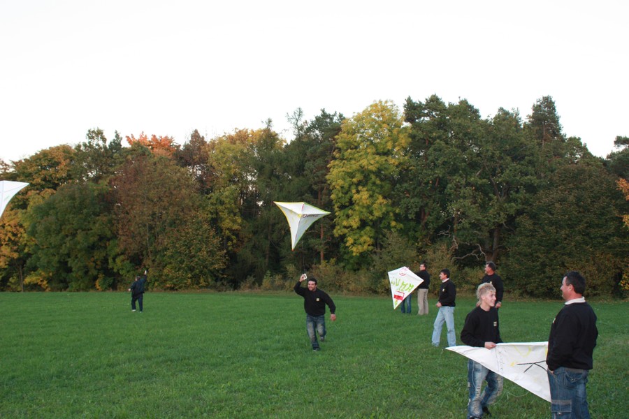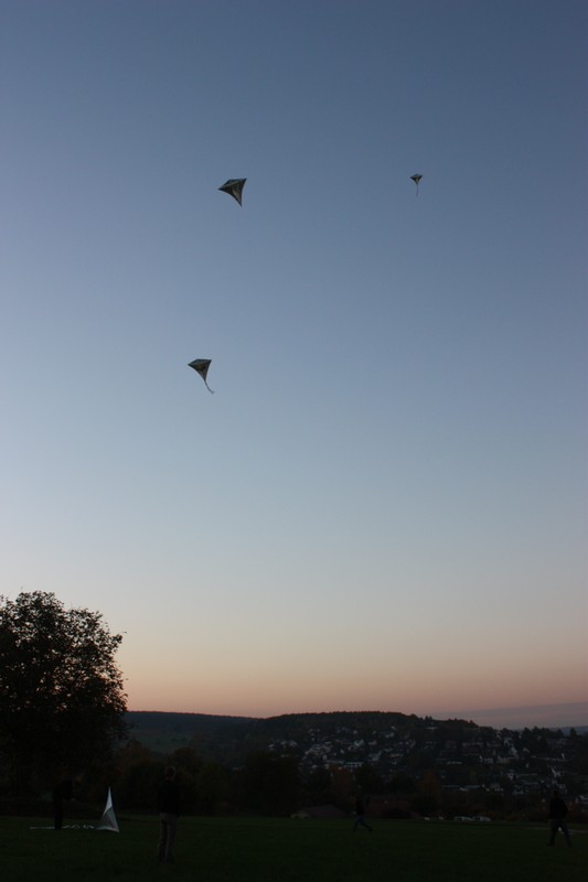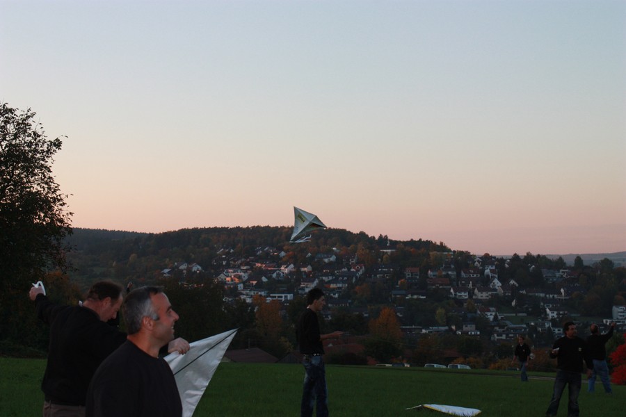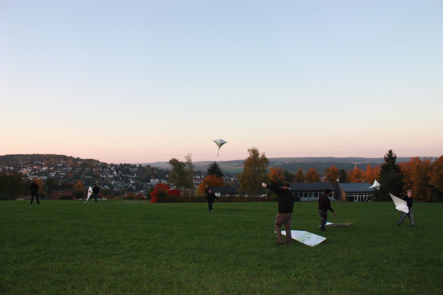 Drachenbauen bei Firma StäblerAuf Anfrage der Bauunternehmung Stäbler in Weil der Stadt bauten wir in Gruppen über 14 Eddy's und konnten am Abend diese vor einem herrlichen Sonnenuntergang fliegen lassen