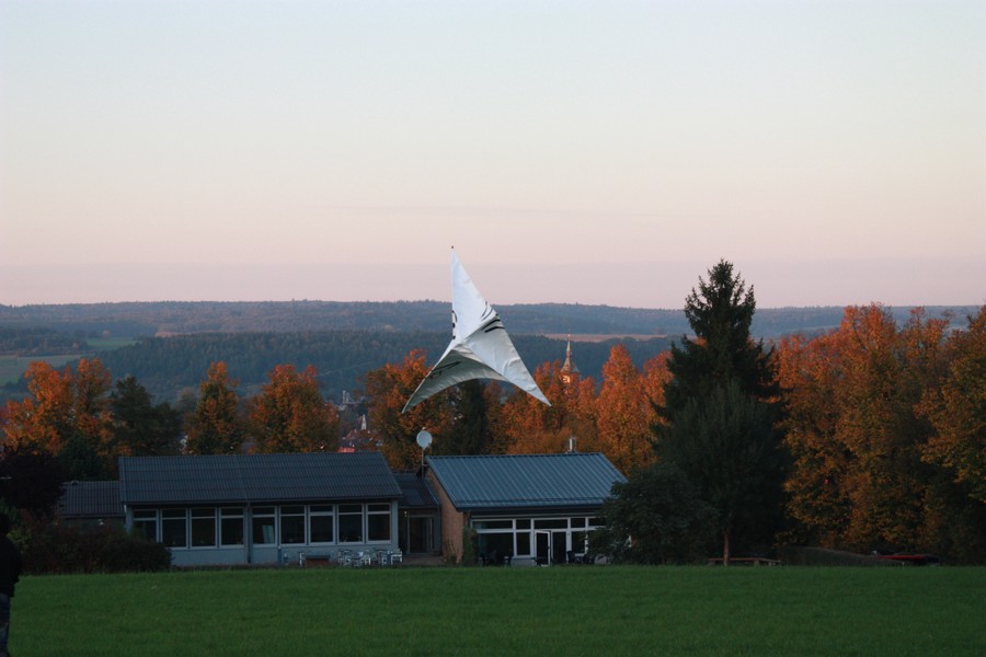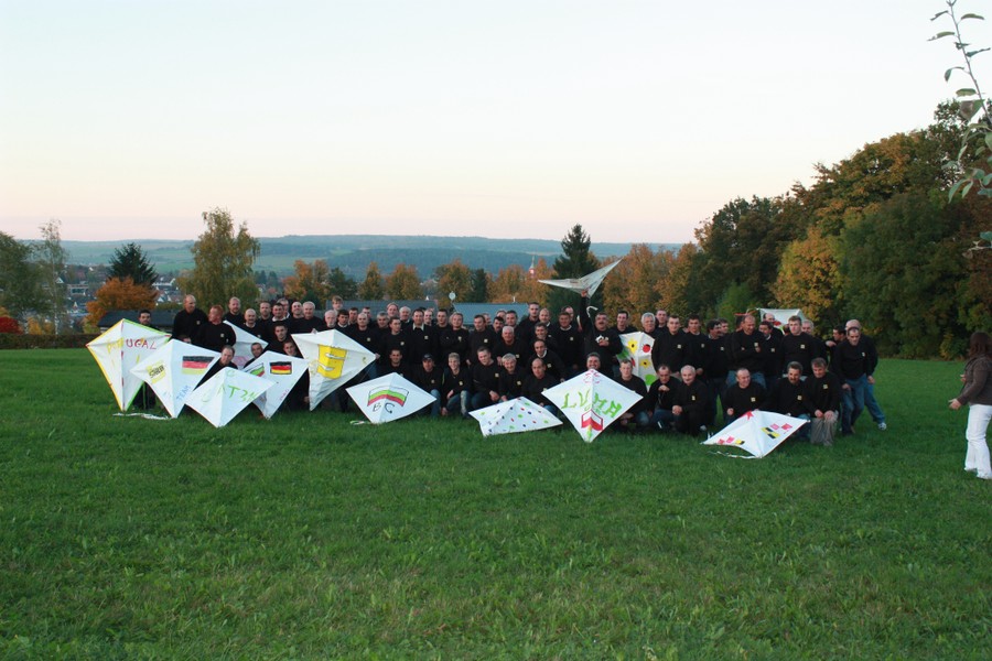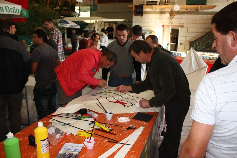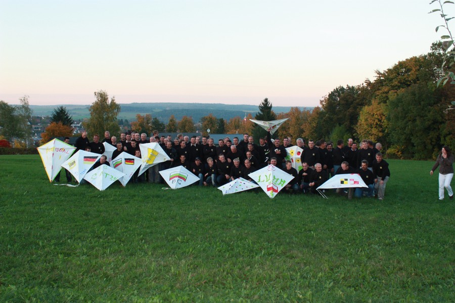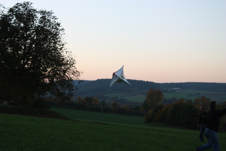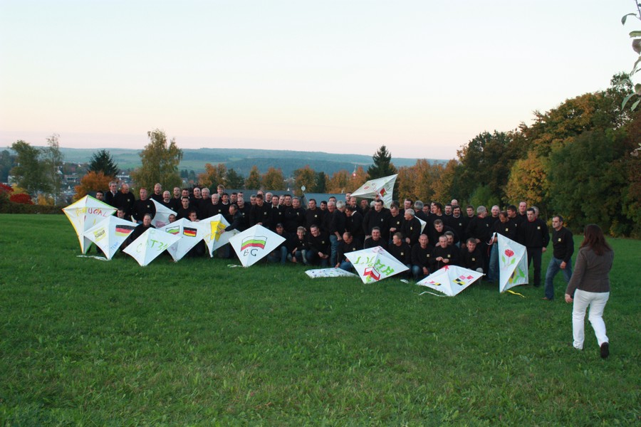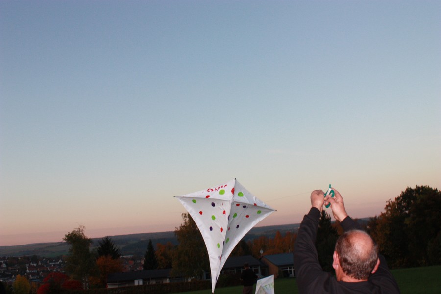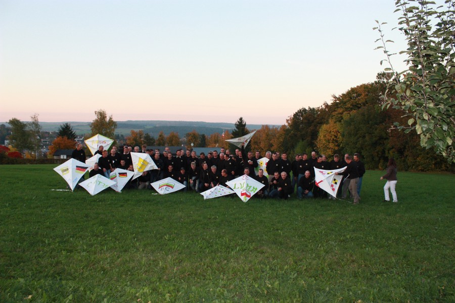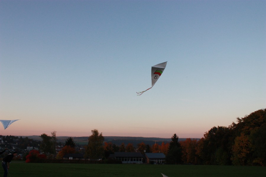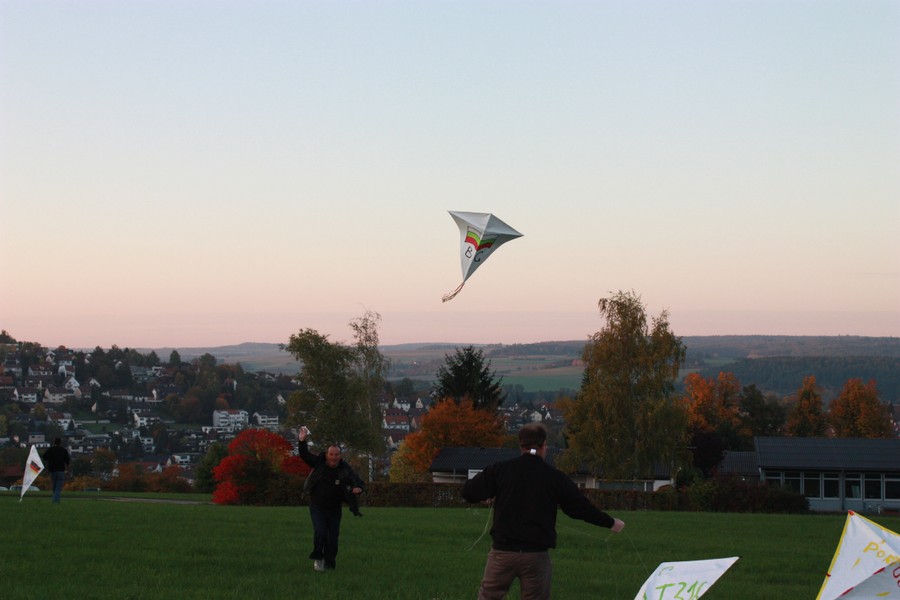Drachenbauen bei Firma StäblerAuf Anfrage der Bauunternehmung Stäbler in Weil der Stadt bauten wir in Gruppen über 14 Eddy's und konnten am Abend diese vor einem herrlichen Sonnenuntergang fliegen lassen