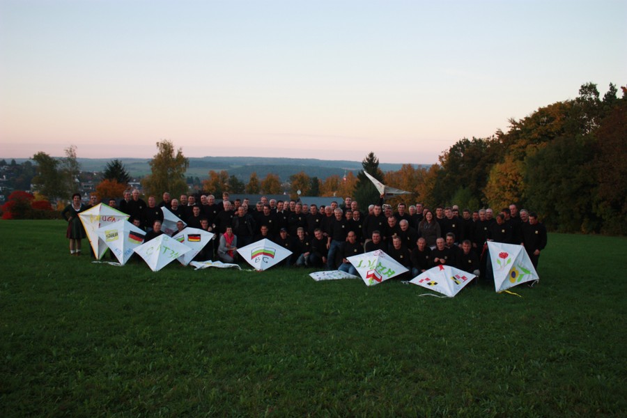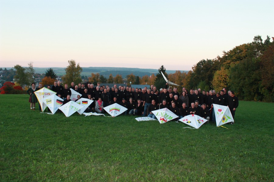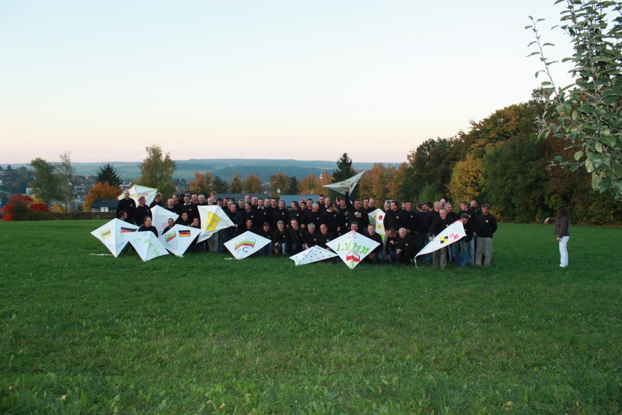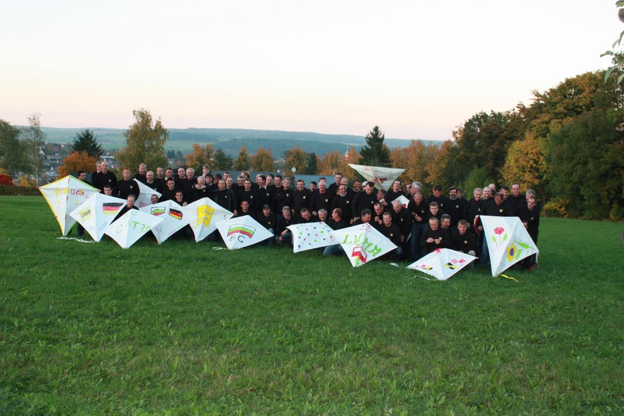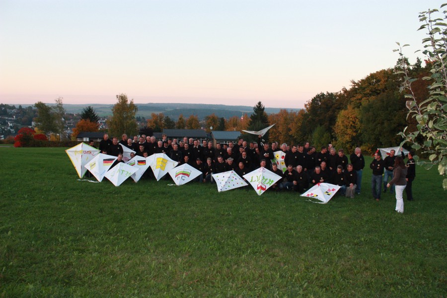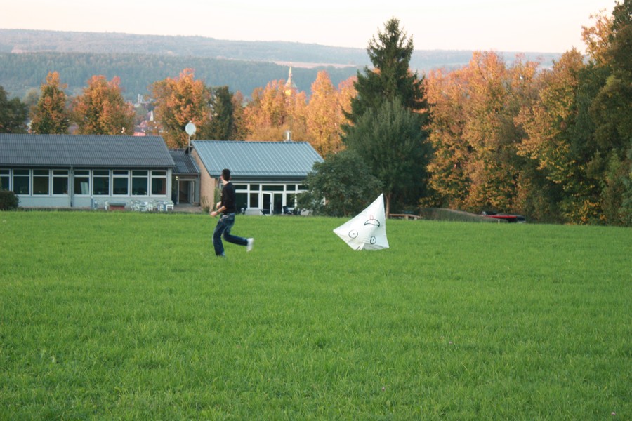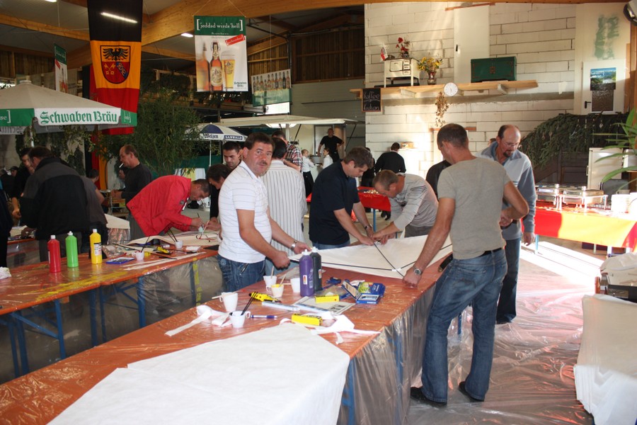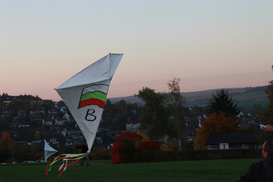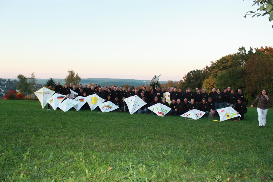 Drachenbauen bei Firma StäblerAuf Anfrage der Bauunternehmung Stäbler in Weil der Stadt bauten wir in Gruppen über 14 Eddy's und konnten am Abend diese vor einem herrlichen Sonnenuntergang fliegen lassen