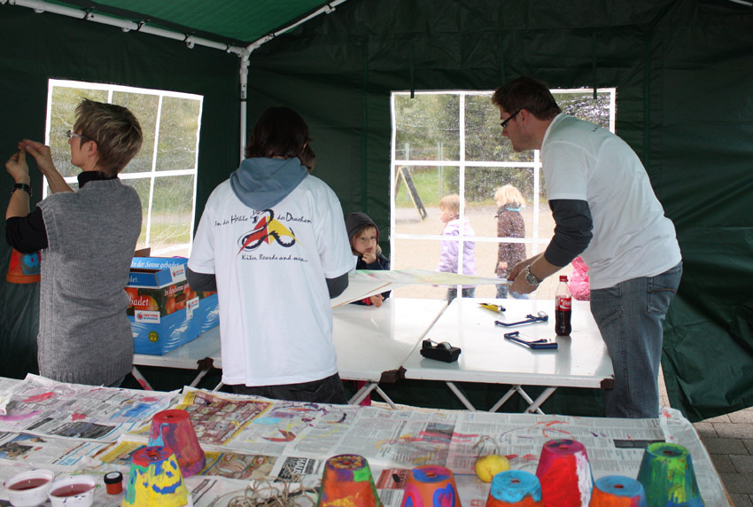 Drachenbasteln mit Familien beim Obst und Gartenbauverein Münchingen Oktober 2010
