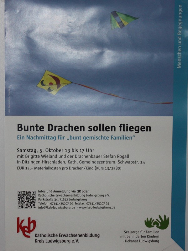 auch dieses Jahr haben wir mit Familien aus der Region Hirschlanden Drachen gebaut, am Ende des Tages hatte dann jedes Kind einen sehr schönen bunten Drachen, nur leider war ein gemeinsames Fliegen wegen des Regens nicht möglich