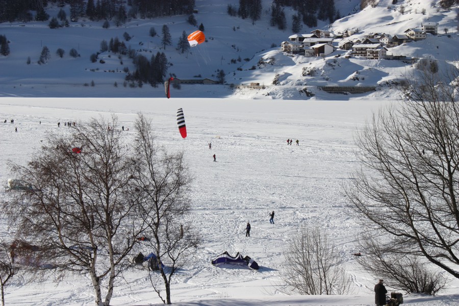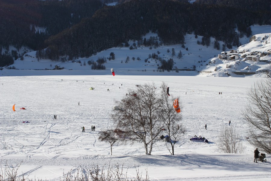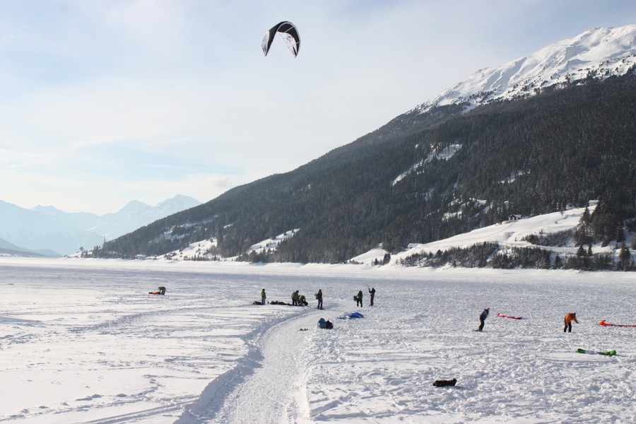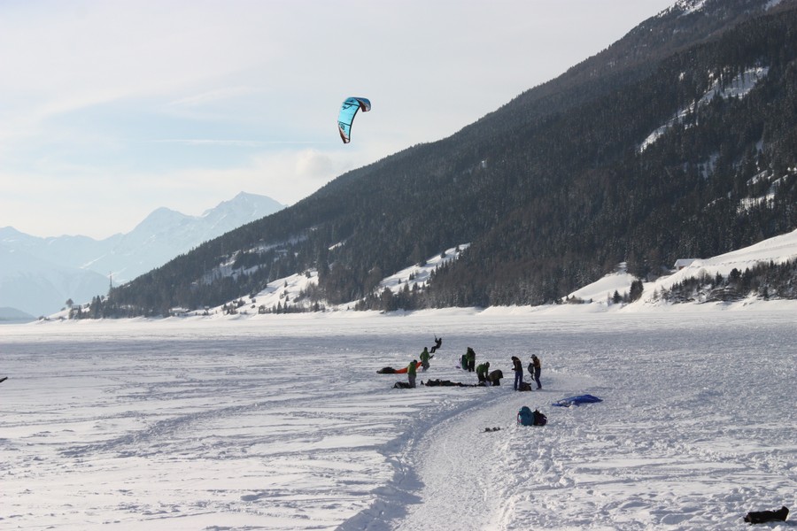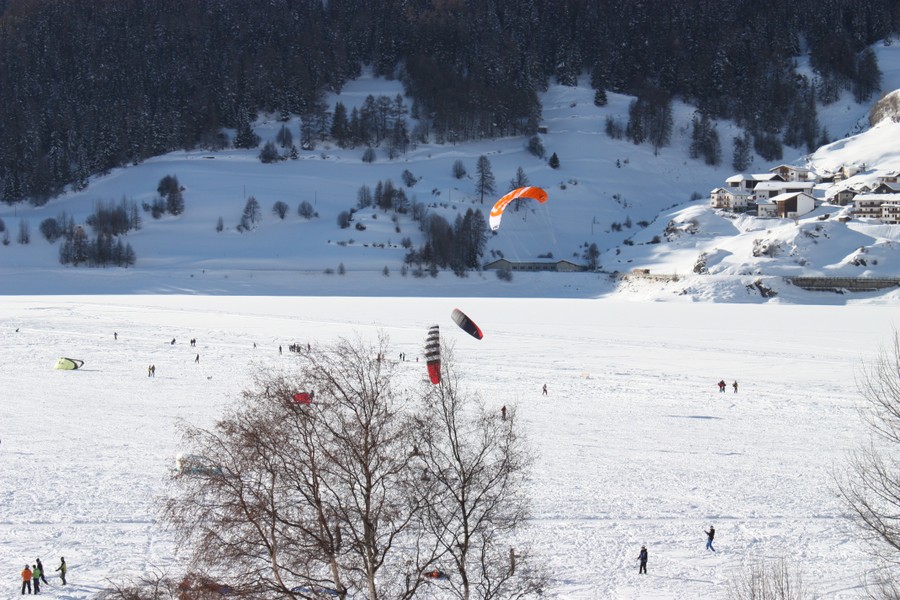 Snowkiten am Reschensee